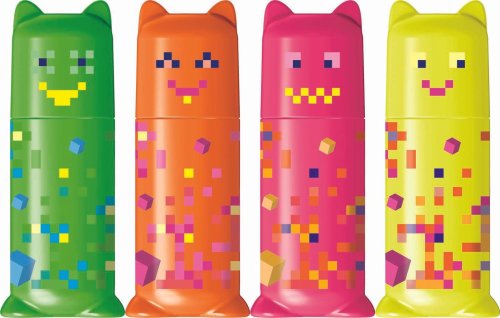 Set plochých mini zvýrazňovačov Pixel Party Mini v žiarivých farbách a atraktívny design. šírka stopy 1 alebo 5 mm fluorescenčný atrament zrezaný hrot ideálna veľkosť do školského peračníka