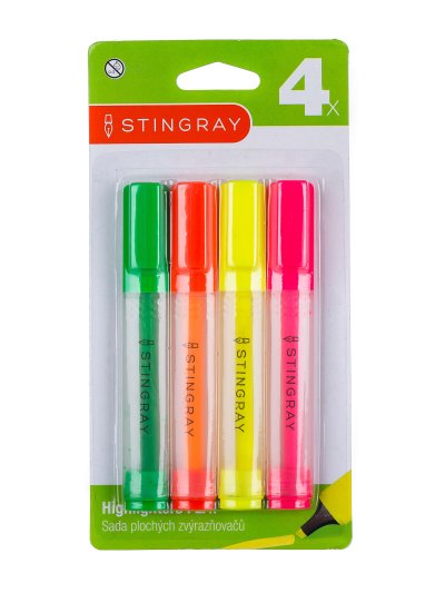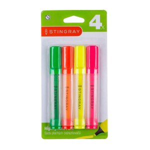 Súprava zvýrazňovačov so skoseným hrotom. Sú určené pre zvýraznenie textu na dokumentoch. Zvýrazňovače sú vhodné na použitie v škole aj v kancelárii.