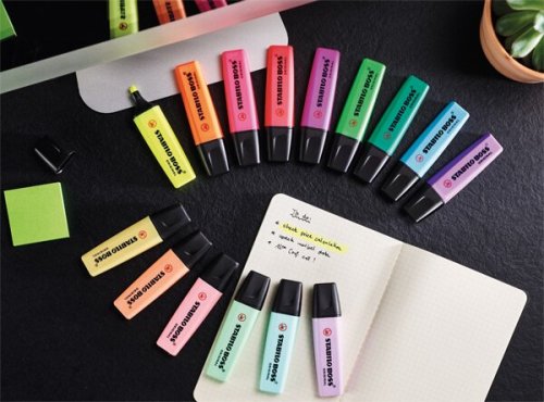 atrament na vodnej báze, * vysoká životnosť, * Stabilo Anti-Dry-Out Technológia: vydrží až 4 hodiny bez vyschnutia, pre lepšiu koncentráciu počas práce, * vhodný pre papier, kópie i faxy, * ideálny pre dizajnové projekty, hand-lettering a poznámkové bloky, * NASTAVNÝ HROT, ŠÍRE STOPY 2 NIE [zvýrazňovač 2-5 mm], V ponuke máme aj pastelové farby., neporovnateľná dizajnová klasika už od roku 1971.