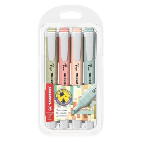 Okrem neónových a pastelových farieb je zvýrazňovač STABILO swing cool dostupný aj v jemných a tlmených farbách inšpirovaných prírodou. stop - 1mm a 4mm - takže zvýrazňovač je možné použiť ako na zvýraznenie, tak na podčiarknutie.