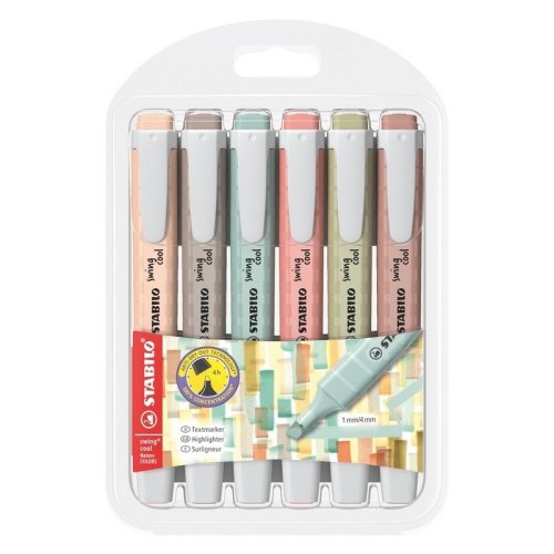Okrem neónových a pastelových farieb je zvýrazňovač STABILO swing cool dostupný aj v jemných a tlmených farbách inšpirovaných prírodou. stop - 1mm a 4mm - takže zvýrazňovač je možné použiť ako na zvýraznenie, tak na podčiarknutie.