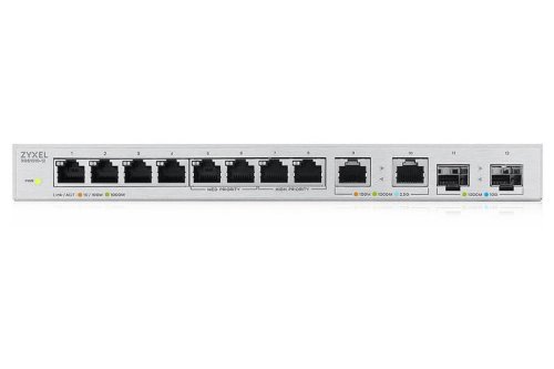 Zyxel XGS1010-12 je výkonný 12portový switch ponúkajúci kombináciu 8 gigabitových portov , 2 Multi-Gig portov s podporou rýchlosťou 100 Mb/s, 1 Gb/s alebo 2,5 Gb/sa 2 SFP+ portov s podporou 10Gb/s . Vďaka tejto konfigurácii je ideálnym riešením pre pripojenie moderných Wi-Fi 6 prístupových bodov, NAS serverov, herných konzol a ďalších zariadení vyžadujúcich vysokorýchlostné pripojenie.